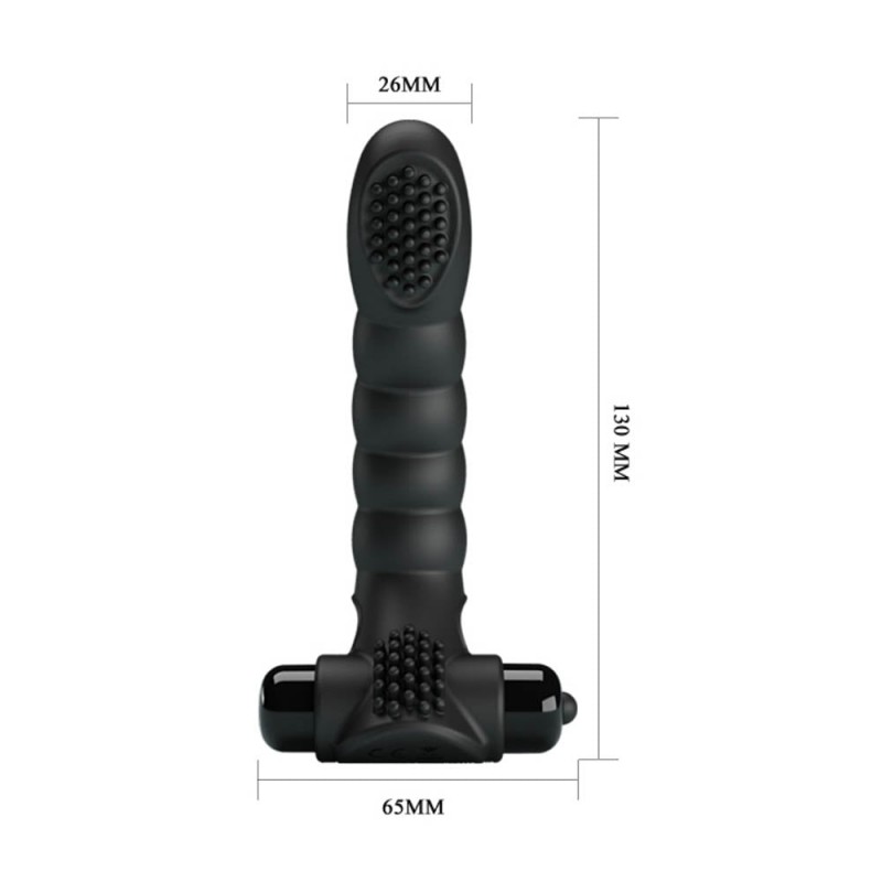 Odlican novi model vibratora za prst sa mogucnoscu istovremenog stimulisanja G tacke i klitorisa sa izuzetno snaznom vibracijom sa 10 razlicitih funkcija jer koristi AAA bateriju.Ukupne duzine 13cm i precnika 2,6cm.Vodootporan je i moze se koristiti sa lubrikantom.